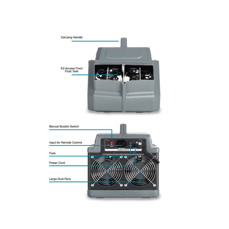 La machine est fournie avec 2 litres de liquide à bulles et une télécommande sans fil, idéale pour créer un spectacle visuel enchanteur en intérieur comme en extérieur, sans contrainte de câbles.